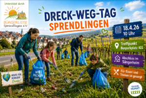 Auf Initiative der Bürgerliste Sprendlingen e.V. ☺️und Sprendlinger Bürger,innen findet auch in diesem Jahr der Sprendlinger Dreck-weg-Tag statt🚮. Treffpunkt ist um 10 Uhr der Busparkplatz